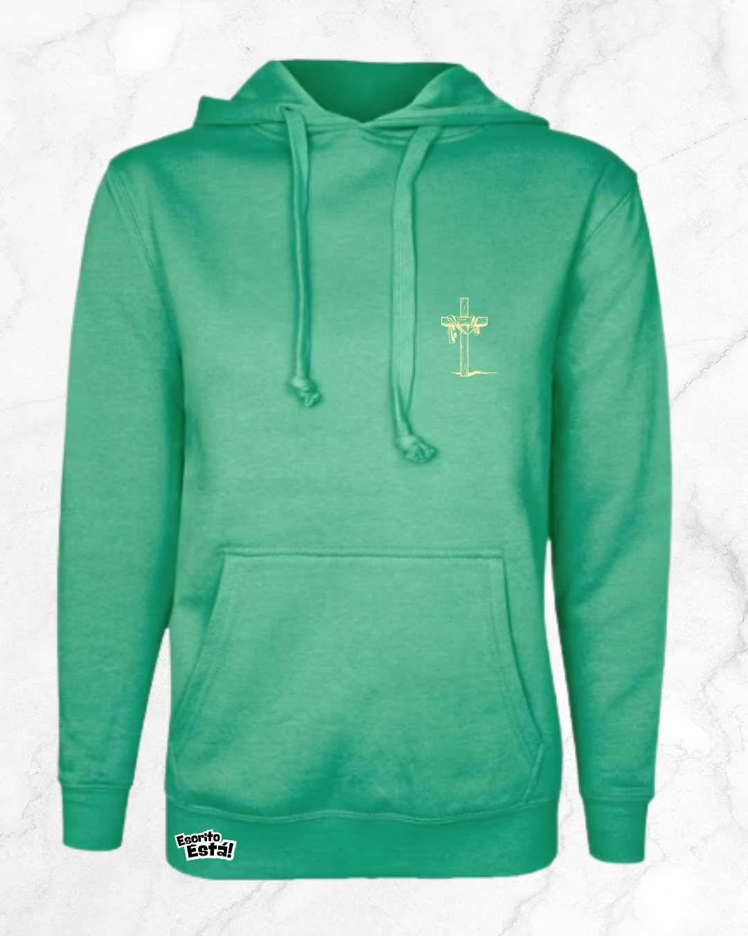 Esta sudadera verde vibrante presenta un diseño impactante con un león rugiente y la palabra 'ALELUYA' repetida en letras doradas. El león, símbolo de fuerza y valentía, representa el León de Judá, mientras que 'ALELUYA' expresa alabanza y celebración.